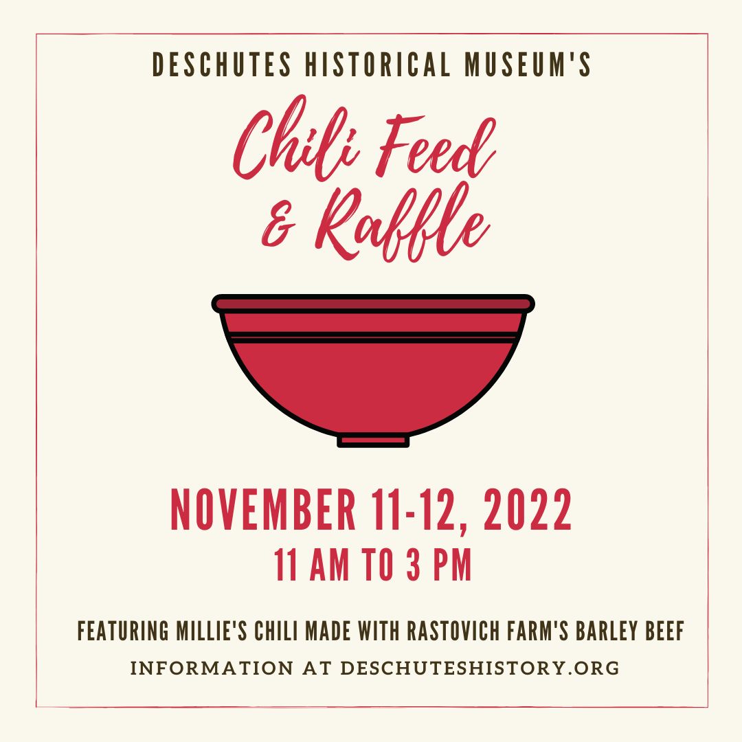 This story goes back to the opening of the Deschutes Historical Museum in 1980, when several women from the historical society were looking for ways to fund the newly opened museum. Millie Rastovich Chopp was one of the original organizers. After a not-so-successful attempt with chicken soup, the answer was found in Millie’s family chili recipe and, as they say, history was made.